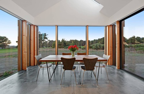 Experience the original utopian ideals of the Sea Ranch in a luxurious, modern interpretation at this brand new home on the Sea Ranch Golf Links. Designed by Turnbull Griffin Haesloop, Architects and built by Empire Constructions, this elegant rental offers views of the ocean and the golf course from almost every room, a private, in-ground hot tub, and a perfect location close to oceanfront bluff trails, beaches, the northern Gualala Point Regional Park, as well as the town of Gualala itself, and the community's swimming pools, tennis courts, and saunas.