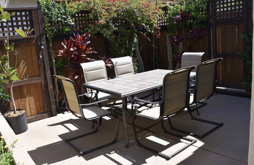 Relax with a glass of wine and a book in your enclosed front yard surrounded by California's brilliant bougainvillea, or have a barbecue in the back with your Weber grill.