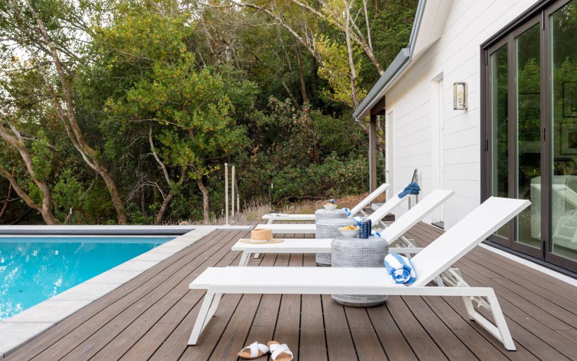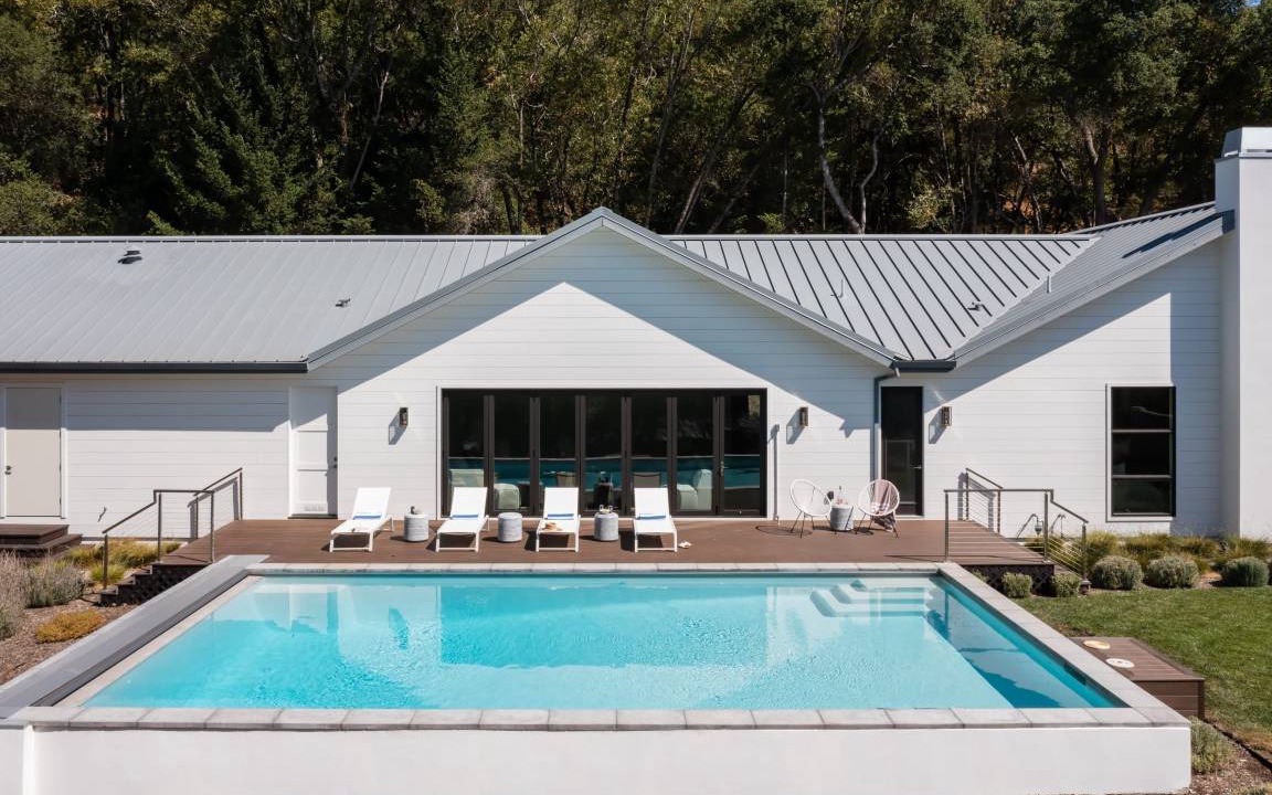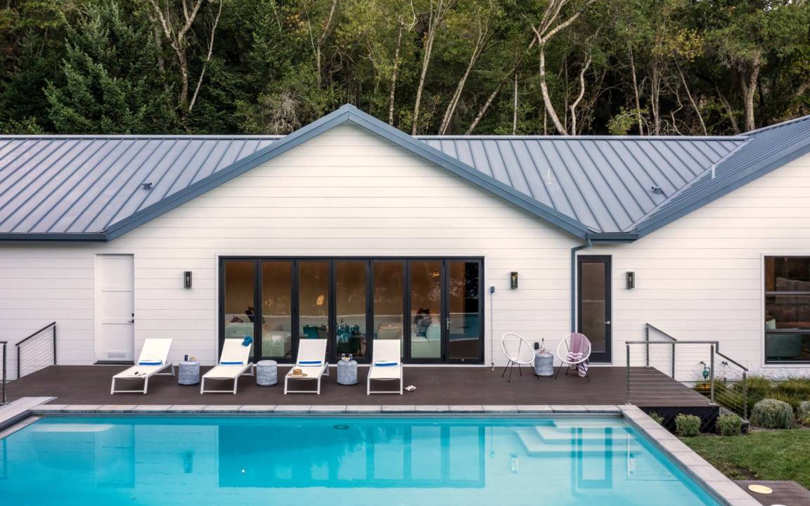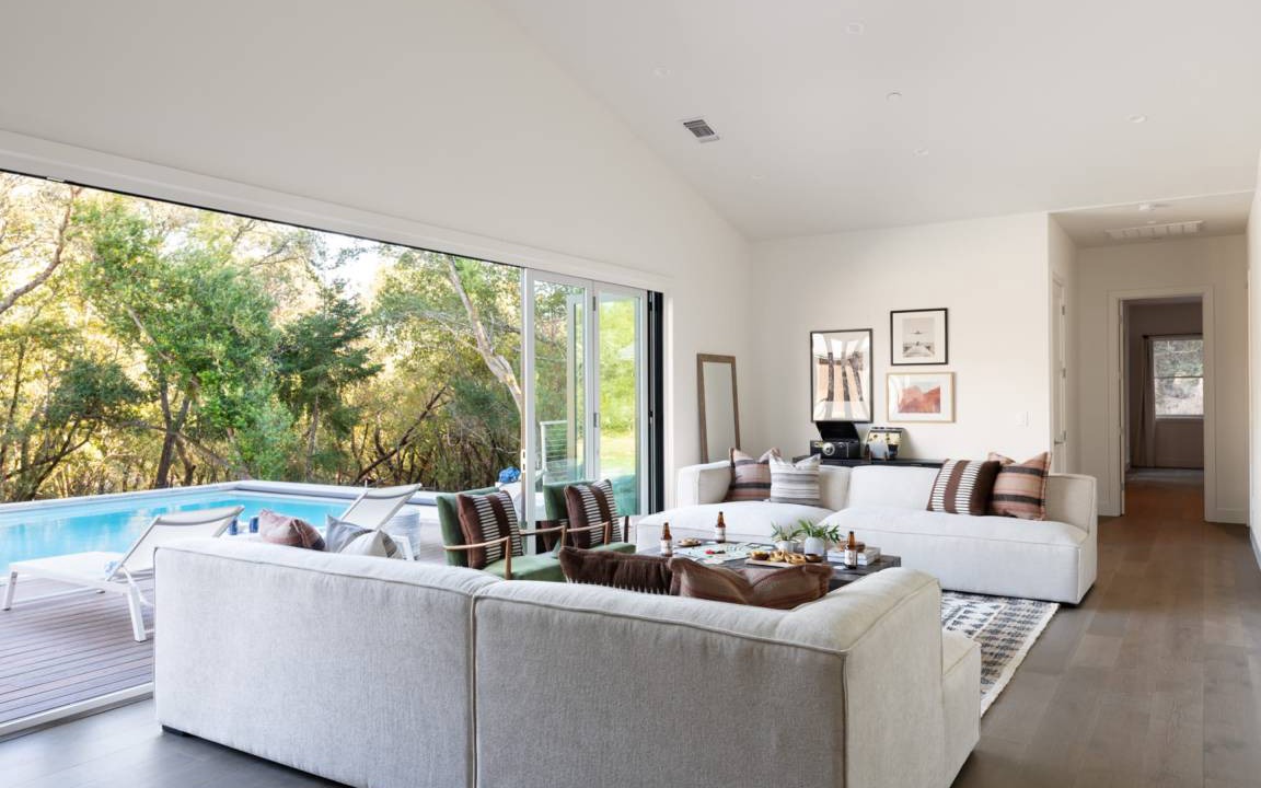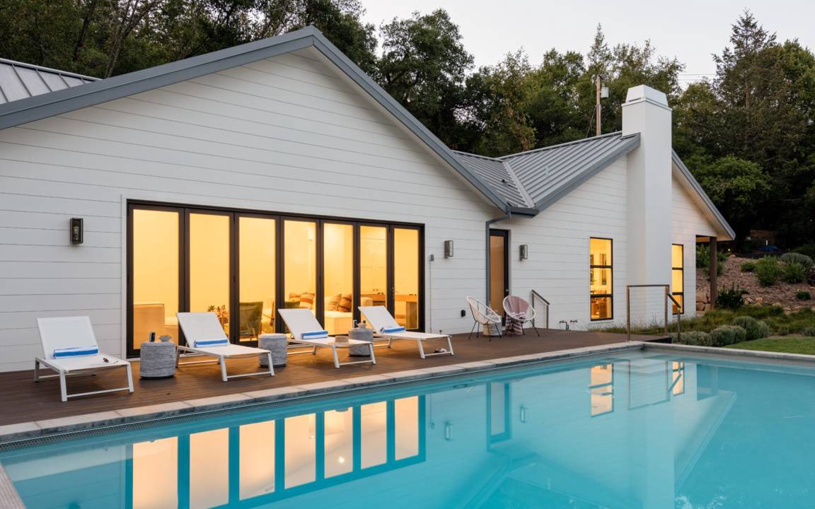 An ideal place to call home during your next trip to wine country, this contemporary bungalow features an open floor plan, plush furnishings, and California-style design. Natural light pours in through large windows and french doors, contributing to the home's already bright and crisp ambiance. Outside, a roomy deck with loungers and a pool invite your group to hang out in each other's company, wine glass in hand. Cheers!