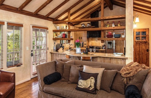 A sophisticated rustic ambiance greets visitors entering the beautifully decorated 2,100-square-foot residence, with hardwood floors, rich plaster walls and high open-beam ceilings, and original photography and art. Renovated by acclaimed master builder Al Saroyan, no detail was overlooked - the home retains the cottage style charm that is characteristic of Carmel while adding quality craftsmanship, space and functionality.