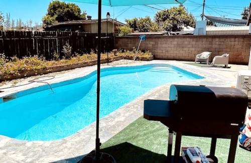 Relaxing in our pool at this centrally-located place under the warm weather in the Sunny Socal. This home is full of tropical vibe can host up to 10 people with 5BR/2BA, Fast internet, Smart TV that allows you to access all entertainment channels like Netflix, Amazon Prime, Youtube, Disney+ and more during your stay!