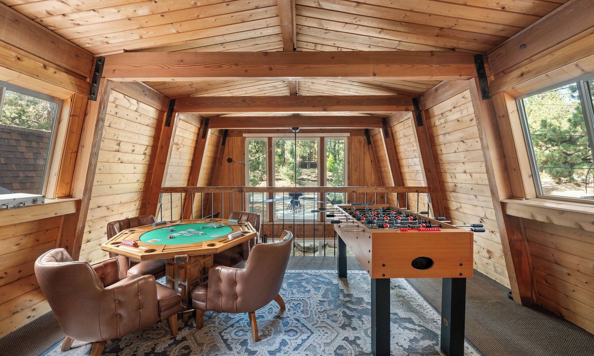 BB LAKE<3 Miles Hottub ArcadeGM Poker Firepit BBQ is located in Big Bear City. BB LAKE<3 Miles Hottub ArcadeGM Poker Firepit BBQ provides accommodation, featuring Balcony/Terrace, Sports/Activities, Bedding/Linens, among other amenities. This Cabin features Balcony/Terrace, Sports/Activities, Bedding/Linens, to make your stay a comfortable one.