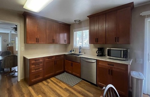 This home is owned by two of the sweetest owners we have. They have owned this home for many years and are constantly making updates so you feel welcome when visiting their home! The most recent update being a brand new kitchen in early 2023! This home is 4 bedrooms, 2.5 bathrooms, sleeps 8 and has parking for 2 cars - 2 of which are in a covered carport. Other updates include: all new furnishings, new floors, new gas fireplace and more! Located right off Pioneer trail, as close as you can get to town. You can bike to Cold Water Brewery or Scusa’s Italian dining. Come check out this comfortable family home!