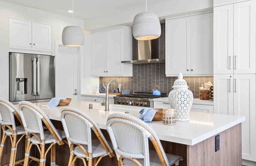 Spacious, Stylish, and Chic This modern, chic, and trendy beach house is designed with an eye for comfort and coastal elegance. With soothing coastal blues and high-end furnishings throughout, the space exudes a serene and stylish atmosphere. The expansive panoramic doors on two levels open up to breathtaking ocean views, letting the sea breeze flow through the living spaces. You’ll feel like the beach is an extension of your home!