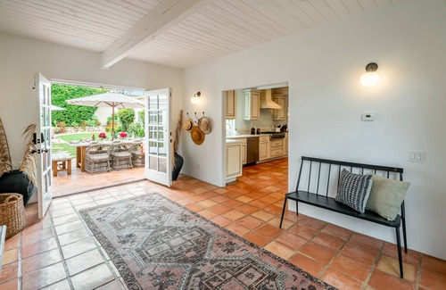 Escape to the Hedgerow community of Montecito in this Mediterranean retreat with a classic Californian vibe proudly presented by Paradise Retreats. The half-acre private lot boasts expansive, mature gardens and fruit trees, a heated pool and hot tub accompanied by a large classic water fountain, all fully secluded within the private estate-like grounds. The hub of the home is the thoughtfully-equipped gourmet Kitchen perfect for family meals in the beautiful indoor and outdoor dining areas. The home interior has been newly renovated and designed with all the finishing touches you’d want. The stylish single-level, 4 Bedroom, 3.5 Bathroom home showcases wood-beamed ceilings, Spanish tile floors, a reading room, ultra-cozy Family Room and a large garage with all the toys and bikes you will ever need. Each primary Bedroom makes you feel as if you have your own wing with a private Bathroom and direct access into the gorgeous yard and pool area via French glass doors. Not to mention, the additional two spacious guest Bedrooms are equally appointed and will make everyone feel at home. Guests love the experience of togetherness, yet enjoy the ample space to spread out and relax.
