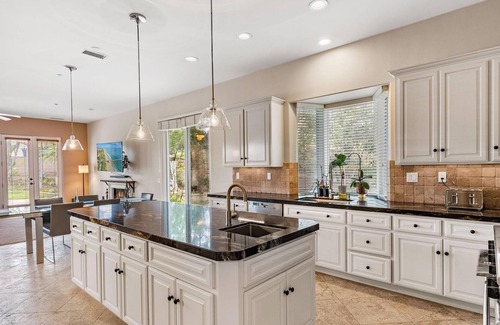 The master bath is also available to guests, providing a luxurious and private spa-like experience. With its top-of-the-line fixtures, ample space, and elegant design, the master bath is the perfect place to unwind and rejuvenate. All of these amenities and more make Casa De Colina the perfect place for guests to call home during their stay.