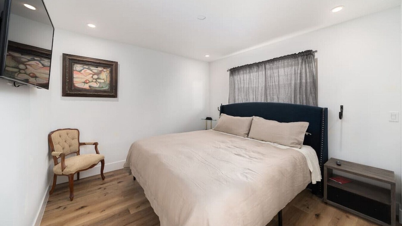 There are two kitchens that are fully equipped for all tastes and preferences. The bedrooms are beautifully designed with a TV in every room. Each King-sized bed can be split into two single beds allowing for a dynamic and versatile space suitable for a variety of parties. The bathrooms have bathtubs and full body shower systems. There is a spa bath. There are indoor and outdoor fireplaces. This home boasts smart locks, a smart sound system Sonos and smart assistant Alexa. The outdoor space is landscaped with drought tolerant plants.
