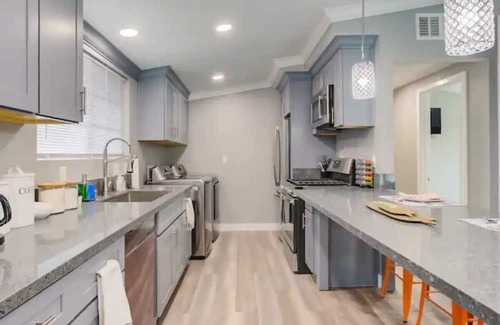 Location, Location, Location! Close to Disneyland, Anaheim convention center, Angel stadium, and Amtrak. Safe neighborhood tucked away on a quiet street. This home boasts vaulted ceiling, open living concept, and oversized kitchen bar with seat for 8+. Spectacular choice for families and groups staying together. Fenced home with private front courtyard and backyard space for leisure. Pool for enjoyment. High speed WIFI. Renovated in June 2023.