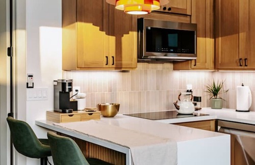 - Full kitchen with stove, dishwasher, RO water filter, full-size fridge, rice cooker, air fryer & all cookware