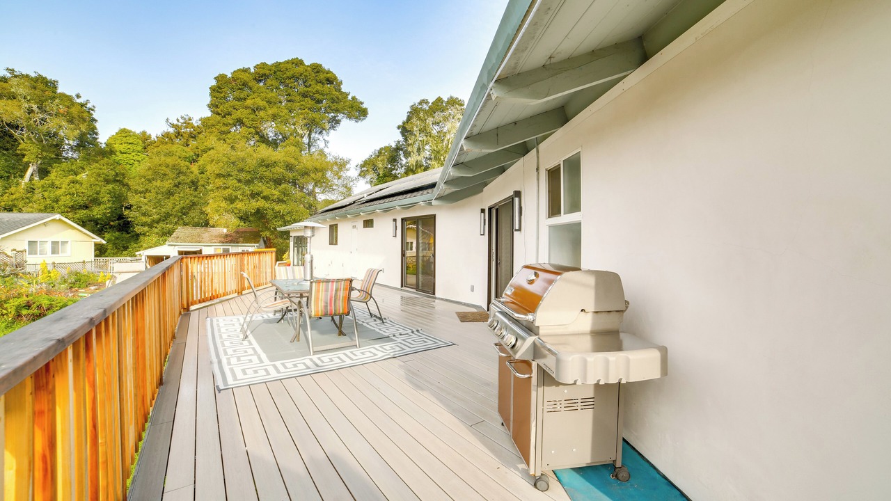 Immerse yourself in the laid-back California lifestyle at 'In the Trees, Close to the Seas,' a beautiful Aptos vacation rental! Surrounded by tall trees, this 2-bed, 2-bath home makes enjoying the area's natural beauty easy. Unwind on the shores, hike or bike at Nisene Marks State Park, or stroll along Santa Cruz Beach Boardwalk. After, play with your pets in the large front yard and relax on the decks!