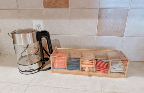 - Keurig Coffee Pods, Tea, and Creamer Pods included in kitchen. Keurig, Traditional Coffee Maker, & French Press Available.