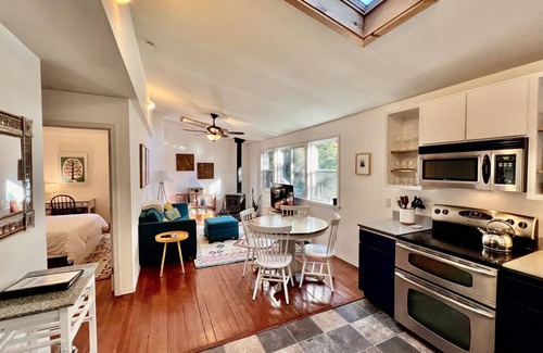 Inside on the top floor, you'll step into a recently-renovated kitchen, fully-equipped with everything you need to cook up your favorite meals. We provide coffee and tea, as well as cooking basics like olive oil, salt & pepper.