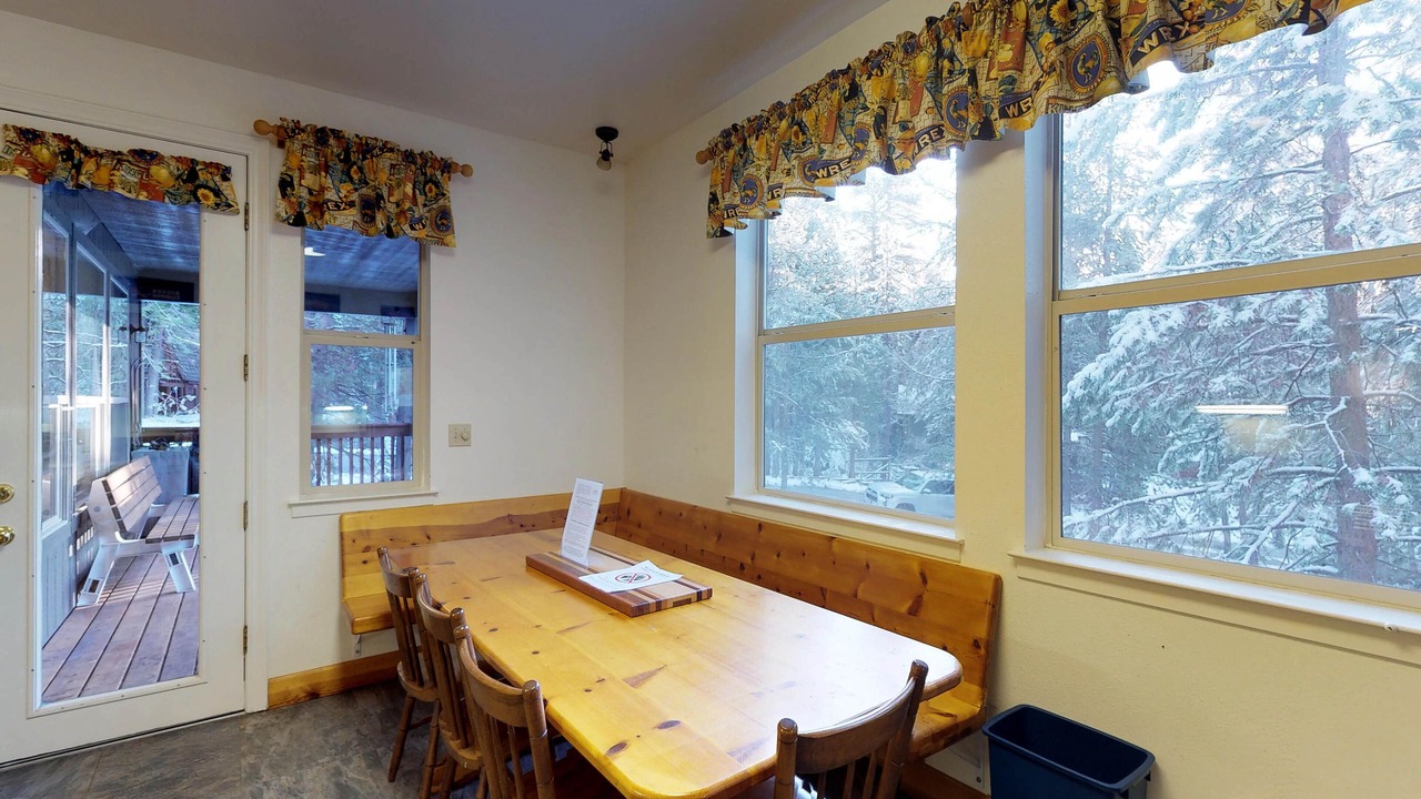 This home offers a cozy, welcoming escape for outdoor enthusiasts. Begin each morning by flipping pancakes in the full kitchen, bring the newspaper outside to read on one of the decks, and use the free WiFi to find a new hiking trail or two. Come wintertime, you can leave your skis and boots on the covered deck, curl up with a good book on the sofa, or catch a favorite movie on TV as the snow falls through the pines. You can even start a load of laundry in the washer/dryer while you relax. There is room for the whole family to enjoy a serene getaway!