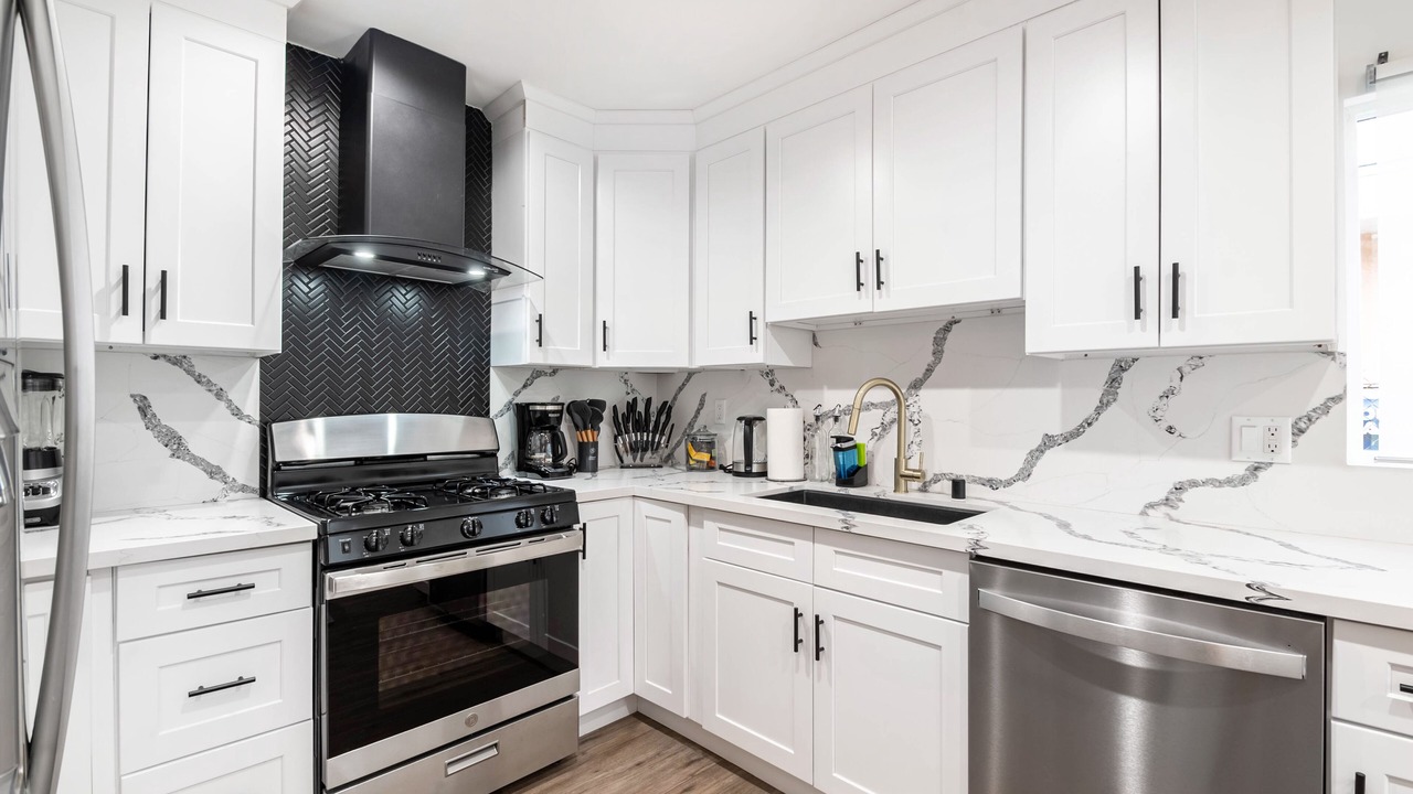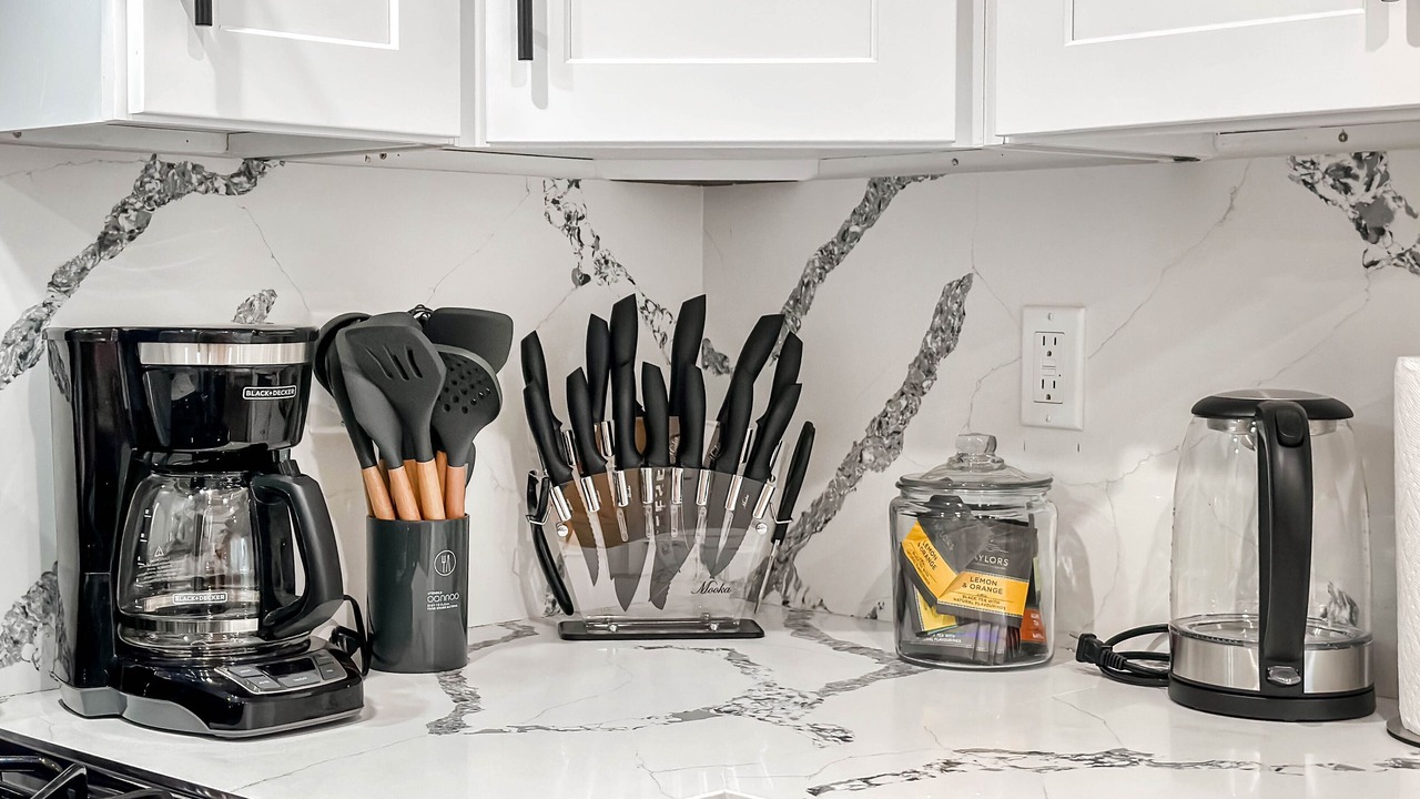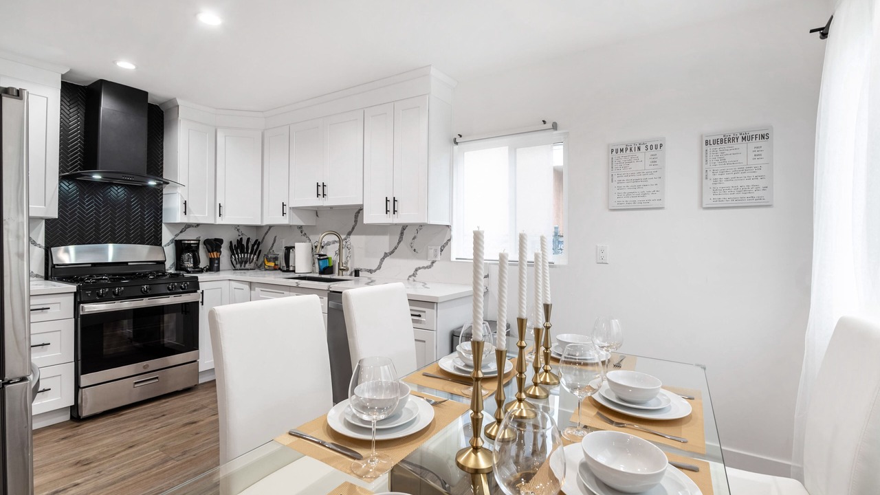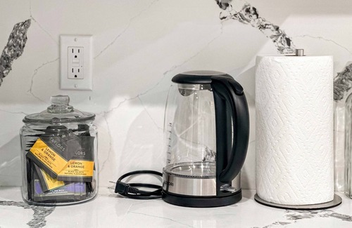 - a fully stocked kitchen with all essentials,