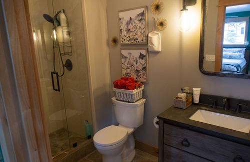 Come stay in a slice of Tahoe paradise. Beautifully remodeled guest bedroom sitting high atop the banks of the Upper Truckee River. Private bedroom and bath detached from main house tucked back in the woods with a million dollar view! If you are looking for quite and seclusion, this is the perfect place. Situated in a very quiet area outside the hustle of South Lake, the perfect romantic getaway!