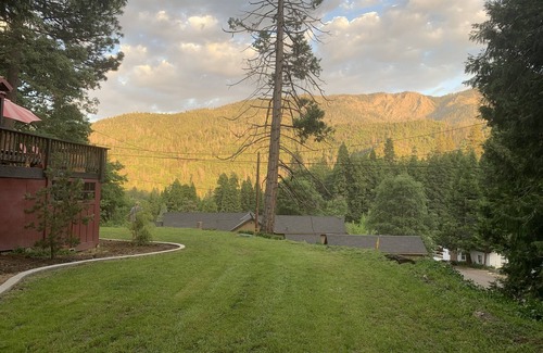Kick back on the deck of this mountain cabin and sip your morning coffee while taking in the majestic views of Slate Mountain. Or, watch for falling stars and search for constellations free of light and smog polution. The unobstructed views of the night sky are tremendous! You may plan your rock climbing trek or fishing expedition up the Tule River while sitting at the dining table. The comfortable couches are perfect to curl up with a novel in front of a fire as snow falls around this peaceful cabin before you head out sledding with the kids.