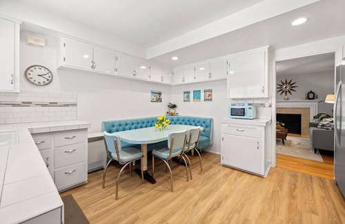 Comfortably sleeps 14 guests, this newly renovated 1950s pool home is located in the heart of OC! Just 5 mi from Disneyland, access to fwys, airports & train station, enjoy day trips to our nearby SoCal amusement parks, beautiful beaches, desert communities, mountain resorts & LA landmarks. Nestled in a safe, quiet, neighborhood we are 1.5 mi from our nostalgic Downtown restaurants, bars and shops & walking distance to our local drugstore, grocery, restaurants & retail shops