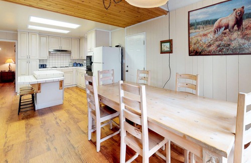 Spend some time here among the majestic redwoods of Shaver Lake and reconnect with nature! Up to nine can stay in this family home, and a dog is welcome. A spacious deck area and great location near the water make this home a fantastic choice for your group.