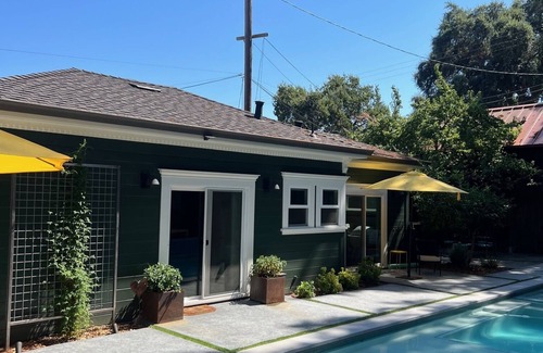 A couple things to note: The pool service man comes Wednesday mornings, and the gardener comes Fridays, usually in the late morning. Parking for guests is mainly in the driveway of the main house. There is also a side gate that leads to the detached Guest House. There are (2) cameras on the side of the house where this access is located, just to fully disclose that. We also have an English bulldog, who is a fully indoor dog with us. When we have guests, we only bring him out on a leash when he needs to go outside, although you are welcome to meet him if you like! He is very sweet.