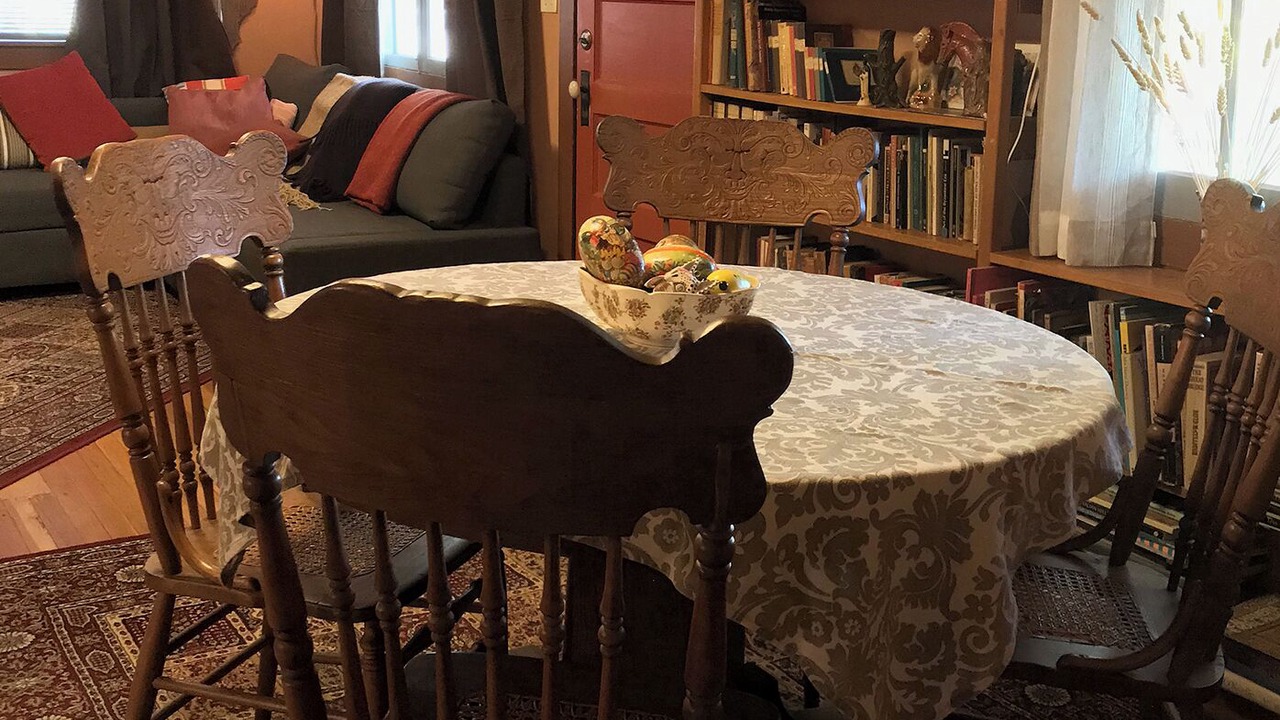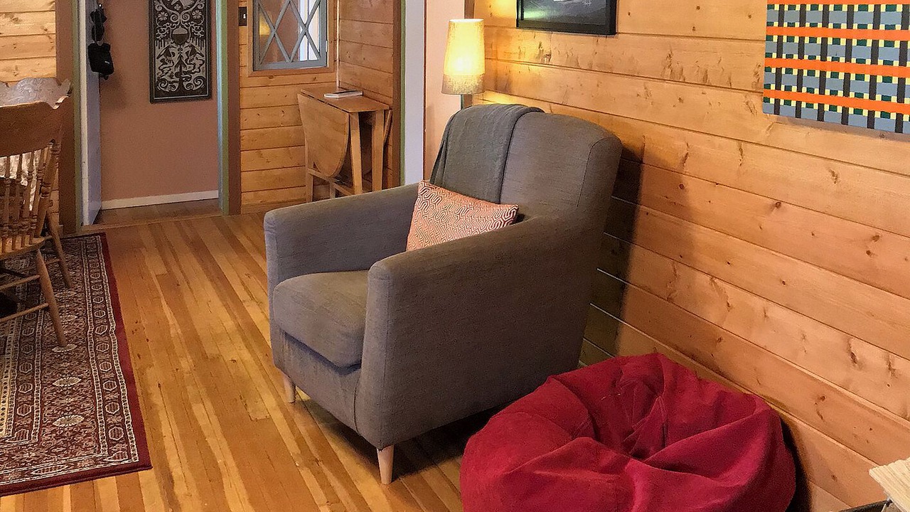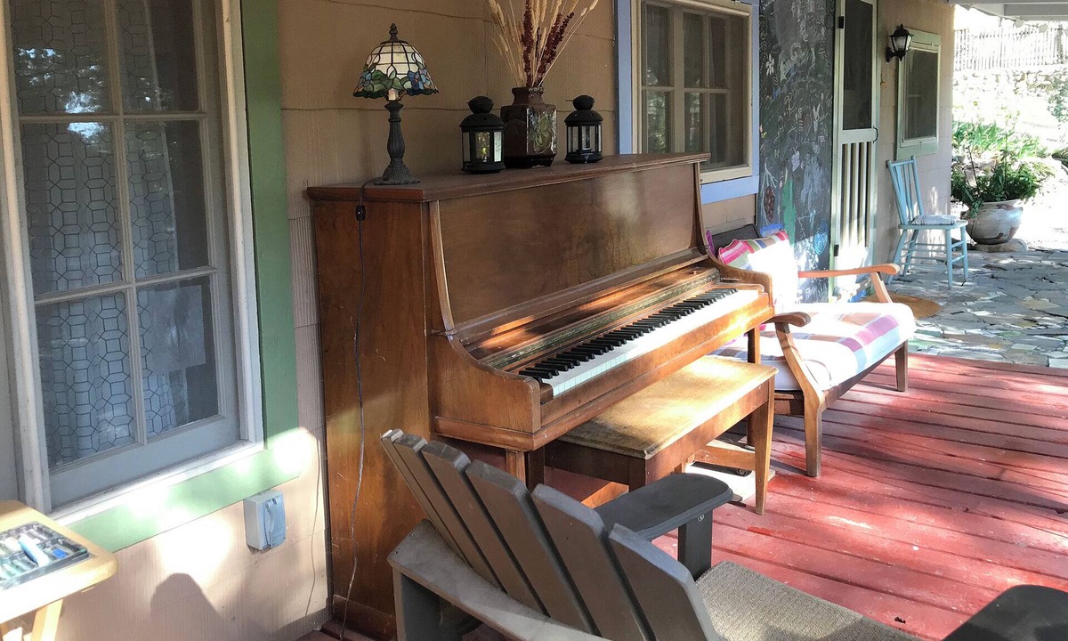 Books of all kinds, for reading and browsing, populate the shelves. A piano on the front porch invites you to play or listen. Games and puzzles complete the cozy picture.