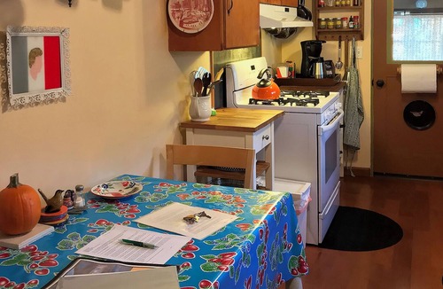Merrynook Cabin is indeed a cozy and happy nook, for friends and family to gather. A 1930's cabin that was (back then) a restaurant for the logging community, Merrynook has a full old-school kitchen and dining area. Outside, a BBQ grill and two patio dining areas encourage conversation and good eating.