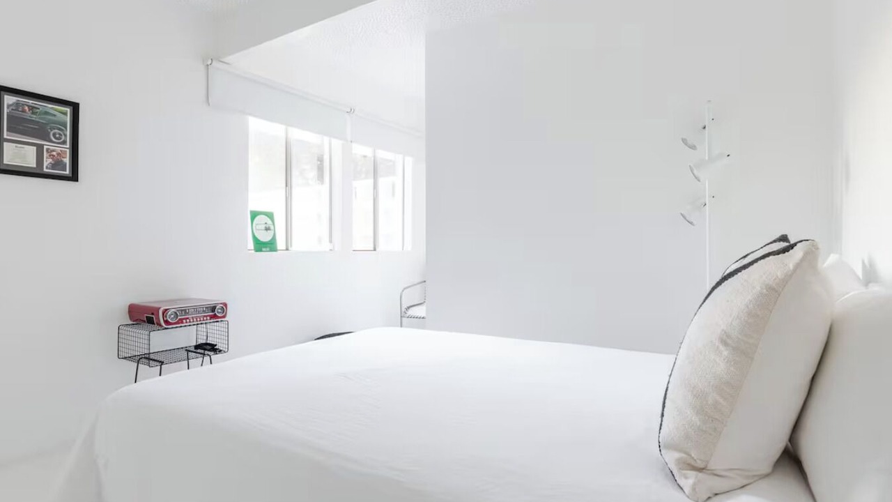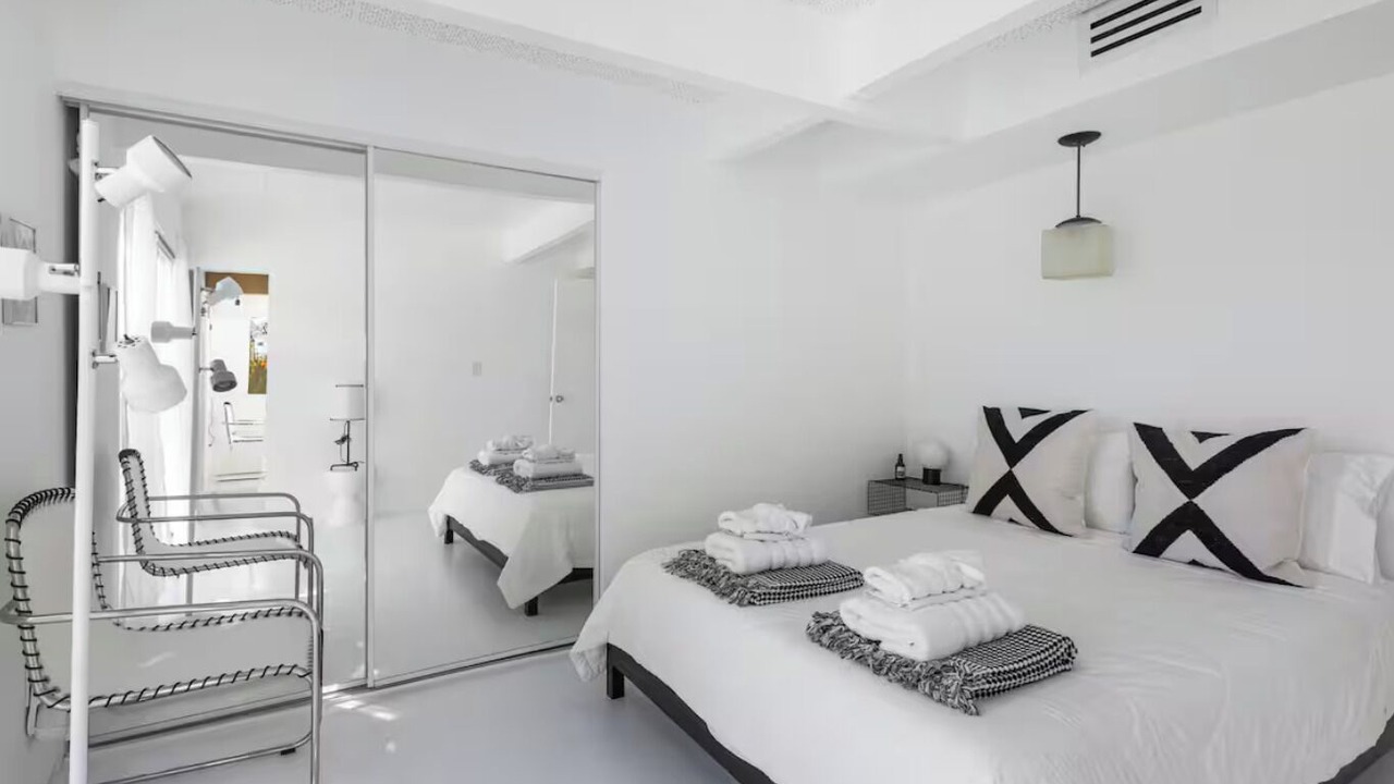 Bedroom 2 - Queen size bed, en-suite twin bunk beds, Smart TV, 2 large windows. Discreet and beautiful view of the olive tree and mid-century architectural houses.