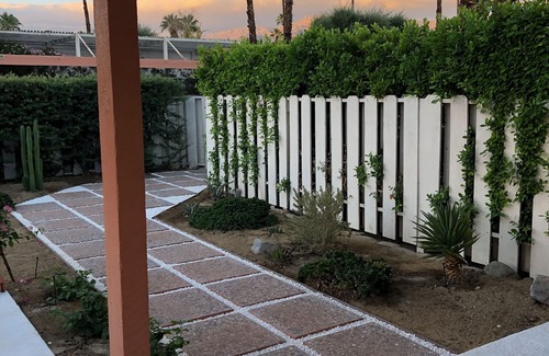 Mix yourself a martini, put Frank on the stereo and watch the majestic sunset from your private, spacious courtyard and garden. Beautiful mountain views from the front garden and the large back terrace. (Both bedrooms open to the back terrace.) Blink your eyes and you are in 1963. The Musette is an elegant, fully restored mid century modern cottage, as sophisticated as the era, with some of the comforts and conveniences of the twenty first century. After sundown, light the stone fireplace to take the off the chill while you cook dinner on the original cooktop! The Musette is a 1,440 square foot dream, situated in The Fairview Cottages community in Palm Desert. This sleeper community (designed and built by renown architect Richard Dornan) is comprised of twenty cottages with a common green area and pool. Two bedrooms and two baths provide ample space and privacy for two couples. One queen bedroom with adjacent bathroom, and King master ensuite, open to the second private, spacious courtyard, where you will watch the sunrise over morning coffee. When you tire of pleasuriating, a short walk takes you to El Paseo, the "Fifth Avenue" of the Coachella Valley. El Paseo is one of the most beautiful drives in the Coachella Valley, with Palm Trees wrapped in lights. You name it, it's there. Tacos to Duck L'Orange, Banana Republic to Escada, and absolutely everything else in between. Whether you are craving your Starbucks Macchiato or need a great new bathing suit from Saks Fifth Avenue, you got it. Drive or walk, your choice. The impressive Rancho Mirage Library, McCollum Theatre and The River are a short drive away, not to mention countless spectacular hiking trails. Five minutes from The Living Desert. A month just isn't enough! Shorter Three night minimum. Enjoy the pool with summer discounts! Seasonal minimum for 2022 January through March $5,000 month.. Please inquire for long term rates.