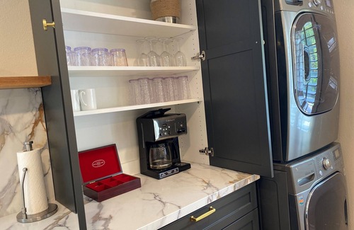 Welcome to your home away from home. An absolute oasis. Private. Quiet. Newly remodeled with top-of-the-line appliances and materials. With your own private entry down a long, beautifully lit walkway, you will be immersed in a quiet, lush landscape to begin your experience. Step into a meticulously designed space that blends modern aesthetics with cozy charm.