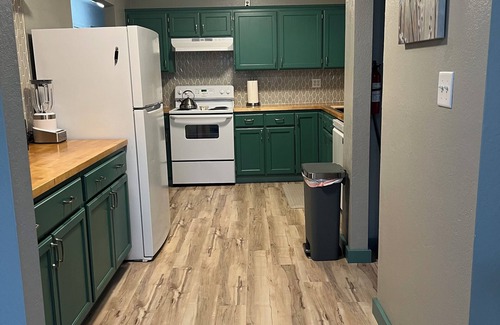 Come relax in the heart of the Coastal Redwoods in one of our three newly remodeled Cottages that offers a beautiful, cozy retreat including exceptional clean standards. This cottage features 3 bedrooms, 1 bathroom, large living room,dining room, full kitchen, laundry room that sleeps 8. It is furnished with a King, Queen, & 4 Twins (2 Sets of Bunk Beds). We offer free WiFi for all your streaming, gaming, &/or conferencing needs.