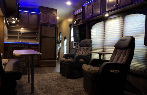 •This is 2018 Weekend Warrior JJ2900. All the equipments and interior looks very new. 29 feet of space gives you an unbelievable amount of room for living quarters for friends and family. parked in our front yard with a city view from the patio.