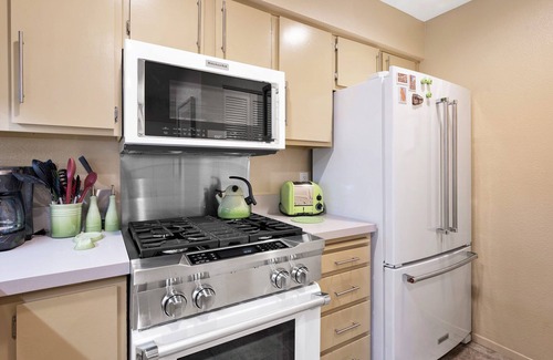 Well-appointed kitchen with updated appliances, including a Bosch ™ dishwasher, commercial style KitchenAid™ gas range and convection microwave, and all essential servingware and gadgets.