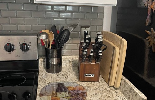 Inside, the kitchen is fully stocked for cooking and entertaining, complete with quality dishes, cookware, spices, oils, and extra pantry basics for anything you may have forgotten. This is a home designed for staying in and enjoying every moment.