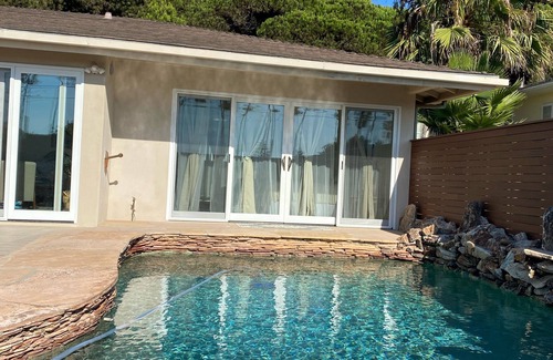 Be just steps away from La Jolla’s quieter Windansea beach when you stay at this beautiful newly renovated surf nest decorated in a boho mid century beach theme. Spend the day at the beach, just two blocks away, or at the home’s private pool. In addition to being just 2 blocks from the beach, you’ll be close walking distance to La Jolla and Bird Rock restaurants, coffee, cafes, shops, and a Sunday morning Farmer’s Market. There are also nearby trails, caves, and seals to check out.