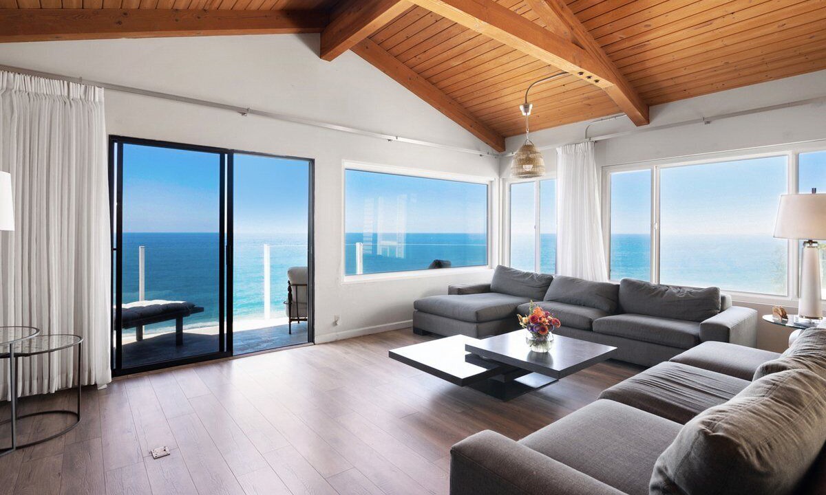 Take a seat by the windows that surround the living room and provide impeccable oceanfront views. Sit on the plush wraparound couch and among the contemporary furnishings and design. Watch the waves crash upon the shore from the outdoor living space right outside the living room on the private terrace with lavish patio furniture. With a glass encased railing around the balcony, you will enjoy both safety and unobstructed views.