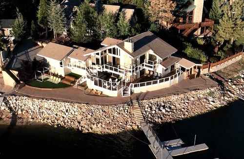 Welcome to The Point on Big Bear Lake. As seen on the Emmy-winning tv show "Staycation" on CBS. This large lakefront home is nestled on one of the most enviable locations on Big Bear Lake, presenting stunning west-facing sunset views and boasting 230 feet of beach access to some of the deepest waters on the lake. It also features two levels of spacious wrap-around decks with protected balconies, steps away from the water.