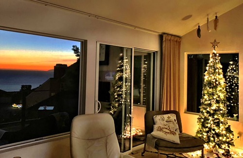 Best Place in Laguna Beach ... just above the village and mid way to Top of the World Park where one can see the world. The owner is an artist at the Sawdust Festival and you will be invited everyday. Lucky to have this luxury home in a beautiful and magical town. includes all amenities Wi-Fi - 4 TV's, waterfall rock Jacuzzi, Koi pond, formal dining, four bedrooms Ocean views from every level walking distance to tennis courts, hiking trails, Pickleball, basketball, etc. etc.
