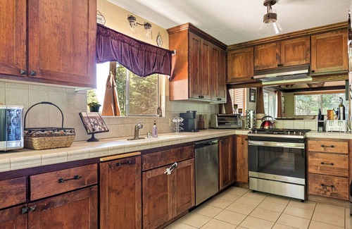 Main Floor: There is a spacious living room with cathedral ceiling and stone fireplace with bar to enjoy family moments. There is a full bathroom upstairs off entrance and dining area in updated kitchen. Washer and dryer is located in the kitchen. LCD smart roku TV located on top of gas log fireplace with blue ray player with Netflix and Hulu. Interior has been thoughtfully updated with newer furniture and decor to ensure you have arrived to a new vacation destination. The deck is huge with a wrap around with seating to enjoy the breathless views and take advantage of using he barbecuing savoring every moment. There is parking for 2 cars which is quite uncommon for the area great for visitors or extended family to visit.