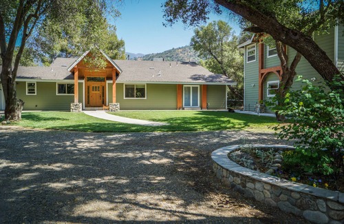 The Kaweah River Chakra, a former yoga retreat, is now a private River Beach Resort as well, and is here to make your retreat, reunion, or family fun Sequoia Park vacation your most memorable trip. Relax in luxury, swim, and fish from the back yard. Play in the hot tub on the river. Enjoy the new medical quality sauna! Pick fresh seasonal items from the organic garden. BBQ using the variety of BBQ's offered (Large propane operated grills and Green Egg), including a Vegan Only BBQ. Hike in the Sequoia National Park...... it's all in your back yard or a few minutes away.