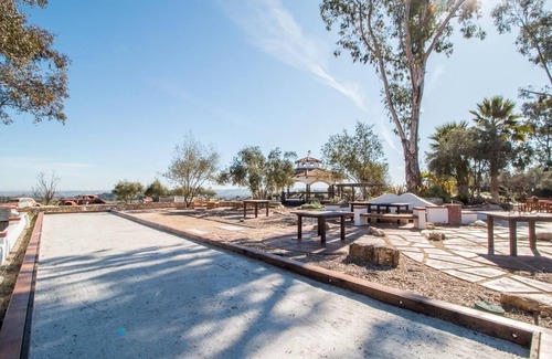 Each spacious suite has a private bathroom, TV with Roku, mini fridge, coffee station and bath robes. They all have unique views of the property and features that make them distinctive. The large kitchen is fully stocked and ready with 3 ovens, gas and electric cook tops, warming drawers, and ample refrigerator space. The open sunlit living area is perfect for reading and relaxing into the afternoon. There is a theater room with a bar for movie nights and game days. We are also big on outdoor living here on the Central Coast and the extensive grounds are a large part of what make Loma Maria so special. Surrounding the house are countless nooks and crannies to explore. There's plenty of room to spread out and find a quiet place to sit with your coffee and watch the quail pass by, or soak up the setting sun as it falls behind the hills. With our long warm season the pool is likely to draw you in at some point (the pool is not heated, the spa is heated). The spa is heated for 10 hours each day of your stay from 12pm-10pm (adjustable on request). If you’d like to test your pizza making skills, let us know so we can prepare wood and schedule a tutorial ($100 fee). For the game lovers like ourselves, there are cornhole boards and a full size bocce court. If you want to stay warm while doing some star gazing, you can get a bonfire going in one of our outdoor fire pits.