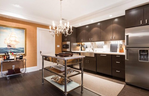 With 3000 sq ft of living space over 3 floors offers many luxurious amenities. The fully stocked large eat-in chef's kitchen has a Sub Zero refrigerator and Wolf Range. The spacious deck located off of the kitchen leads to the beautiful backyard where the entertainment room is located. Sliding doors open to the covered patio with gas grill, fireplace, and dining table. The entertainment room features a 65-inch flat panel TV, stocked beer dispenser, microwave, refrigerator, dishwasher, and half bath.