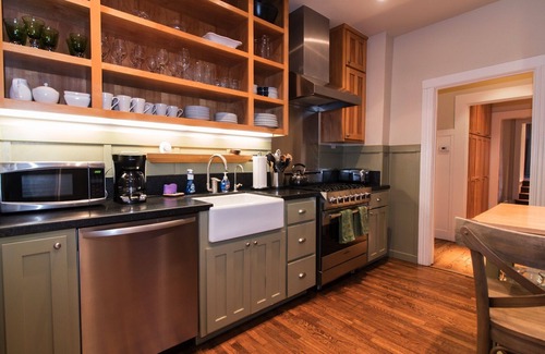 Features: Roku TV's in guest mode so you can login to your own apps, Gourmet Kitchen, Soft water system, Sunny Garage Rooftop Deck, Garage parking, Wi-Fi, Heated floors in the master bathroom, portable AC in the master bedroom only. Gas Grill.