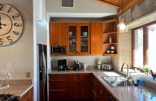 Gorgeous and majestic house made of Rammed Earth with stunning architecture. Two Master Bedrooms, kitchen with beautiful 40-inch stove. Many overhangs with lots of places to sit and relax all around the house. Private pool with in-ground spa. Separate building with game room: Chess, Ping-pong, and Foosball. THERE ARE MANY STEPS AND LEVELS INSIDE THIS HOUSE. PLEASE DO NOT RENT IF YOU ARE NOT STEADY ON YOUR FEET OR CANNOT EASILY NAVIGATE STEPS.