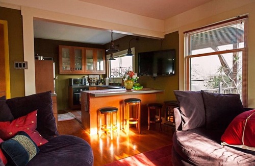 Classy digs on the urban wine trail, In the heart of the entertainment district. Mama Dux is the ground floor apartment in The Dux, a three apartment hotel on the urban wine trail. Experience enveloping luxury in this designer apartment in a classic craftsman house one block from the center of town and five walking blocks to the beach. Shopping, music, dance and excellent restaurants are just steps away.