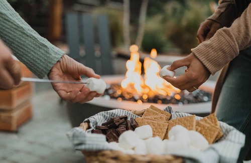 Craving more space and luxury? Guests also enjoy access to 'Platforms,' our property’s signature communal outdoor retreat Nextdoor. Surrounded by breathtaking landscaping, this vibrant oasis sets the stage for both relaxation and recreation. Discover open-air showers, a second hot tub, cozy fire pits aglow with warmth, and playful touches like corn hole and swaying hammocks. Whether you’re lounging under shaded umbrellas or settling into plush seating, this enchanting haven invites you to unwind and savor its serene, one-of-a-kind charm.