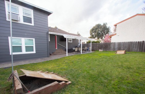 Located in the center of Coastal Monterey bay town in the peaceful area with a short drive to Santa Cruz and Monterey. Have fun with the whole family at this stylish place. Relax and enjoy some ease and catch a movie or game on a real time backlit 110 inch HD video panel in living room. You can play around in the Arcade/game room with options or out doors day or night for BBQ and entertainment with well lit horseshoe pits and patio. Fnt and bk yards are fully fenced, 4 bedrooms with 2 kings, 2 full, double full bunks bed w/ pullout trundle and queen Airobed