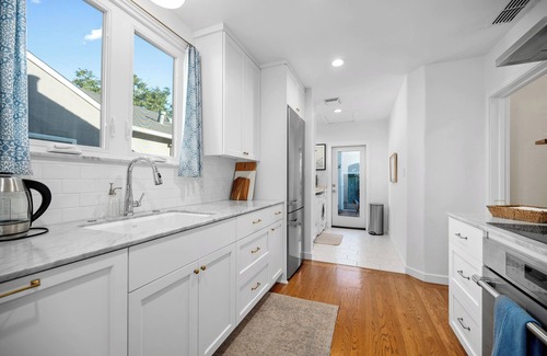 Welcome to our stylish mid-century modern bungalow near McKinley Park in Sacramento! This charming 2-bedroom, 1-bath home offers a beautiful backyard with a farm table, lounge chairs, and a soothing water fountain, ideal for outdoor dining or unwinding. The updated kitchen includes all new Thermador & Miele appliances. Located in a peaceful, family-friendly neighborhood, this cozy bungalow combines comfort, style, and convenience. Book your stay today and enjoy relaxation with mid-century charm!