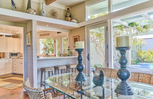 Overinglooking green fields adjacent to the 18th century Carmel Mission and the carmel River Beach beyond " Mesa mid Century Modern" features more than Captivating views. Beyond the Copper clad front door entrance to this oasis is a bright quiet cozy retreat. This spotless eco-friendly home has a comfy King and Queen Beds with Luxury linens, "Life Source" Whole house filtered water System, and is cleaned with organic products.