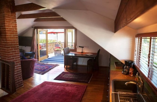 Papa Dux is the second floor apartment in The Dux, a three apartment hotel on the urban wine trail. Enjoy mountain and riviera views from this lovely apartment located on the urban wine trail. Experience enveloping luxury in this designer apartment in a classic craftsman house one block from the center of town and five walking blocks to the beach. Shopping, music, dance and excellent restaurants are just steps away.