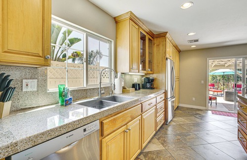 Make this Poway vacation rental the home base for your next memorable stay! Located in a welcoming community just 23 miles from San Diego, this 3-bedroom, 2-bath house provides a peaceful haven near beaches and attractions. Spend your days exploring Torrey Pines State Natural Reserve or visiting the San Diego Safari Park. Need a break from the SoCal sun? Relax in the cozy living room before heading outside to watch the sunset from the deck. Secure your stay at this idyllic oasis today!