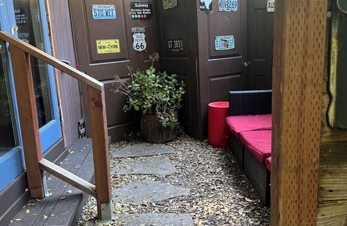 We hope you enjoy your private cabin with a full bathroom and shower, your private patio right outside your front door and your shared deck with patio set. Walk through our large wooden gate at the top of the property and 1 minute down the hill to a sweet creek beach on the bubbly Soquel Creek.